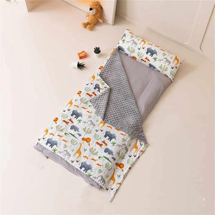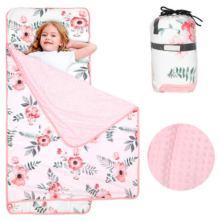 Blue Toddler Camping Nap Torba Dizajn rollUp omogućava prostirku da putuje s lakoćom, kao i prikladnim kaišem zatvarača pričvršćivanja i ručice za nošenje.
