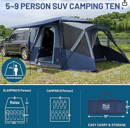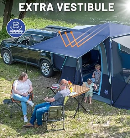 Camping porodični izlet Tent, veliki SUV TENT uključuje 3 x 8 FT prikazan trijem i tendu za dodatnu udobnost i organizaciju; Savršeno za skladištenje cipela, hladnjaka i stolica dok drže vaš prostor uredan