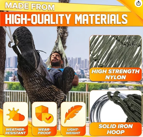 Pješački viseći Hammock, OVE najlonske žice ima visoki nosivost. Ovi najlonski konop savršeni su za unutarnju i vanjsku i vanjsku izdržljivost i otporne na habanje