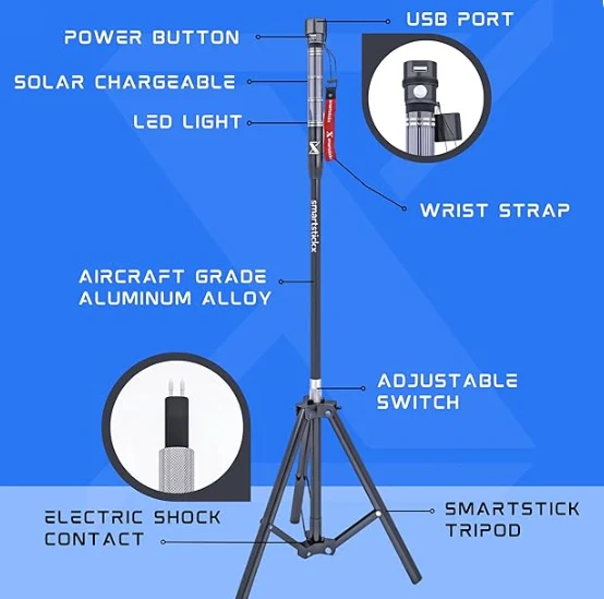 Taktički planinarski štap može lako napajati vaš pametni telefon ili bilo koji drugi USB uređaj pomoću prikladnog USB priključka. Nikada se ne brinite o nošenju banke za napajanje kada imate palica za planinarenje preživljavanja.