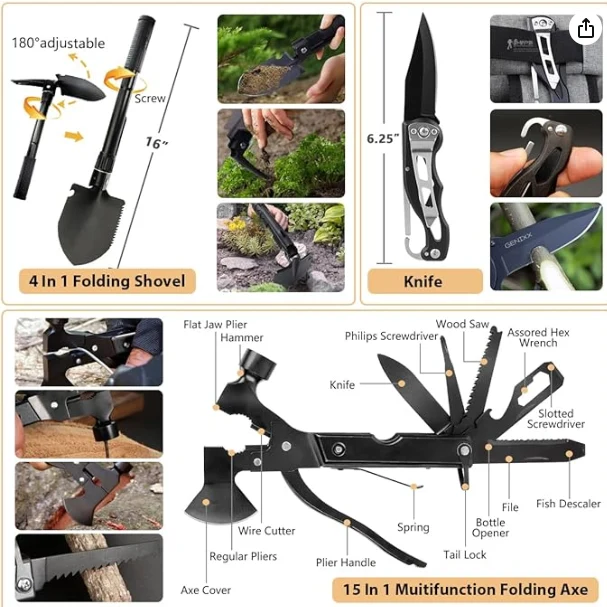 Molle Vanjska torbica za prvu pomoć uključuje ukupno višenamjenske alate za preživljavanje od 250kom. Sadrži najpopularniju opremu za preživljavanje i alate, također i prvu pomoćnu komplet koji je dovoljno za obradu porodice ili grupe prijatelja pod hitnim okolnostima.