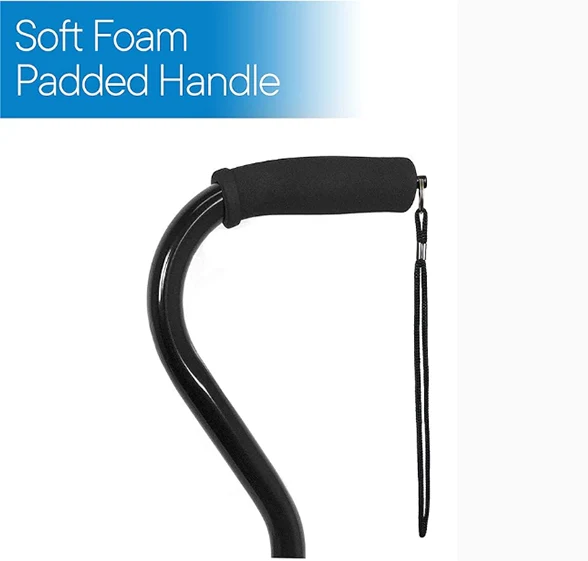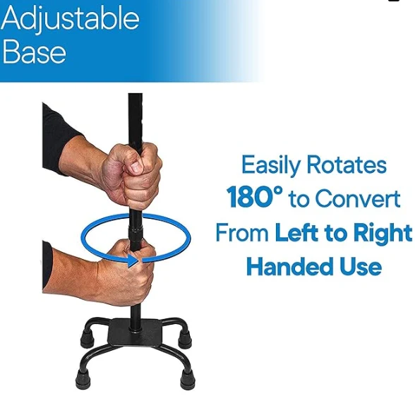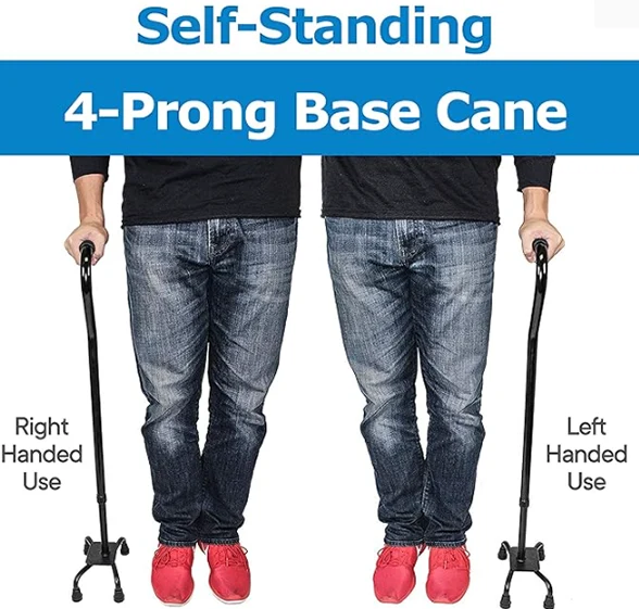 Medicinska trska stara muškarac, svaka prgu je prekrivena vrhunskim vrhom od gumenog trčanja za dodatnu stabilnost i sigurnost. Quad baza čini je samostojećim trskom koji eliminira pada ili pada na pod. Savršeno za operaciju kada ne možete saviti ili dostići.