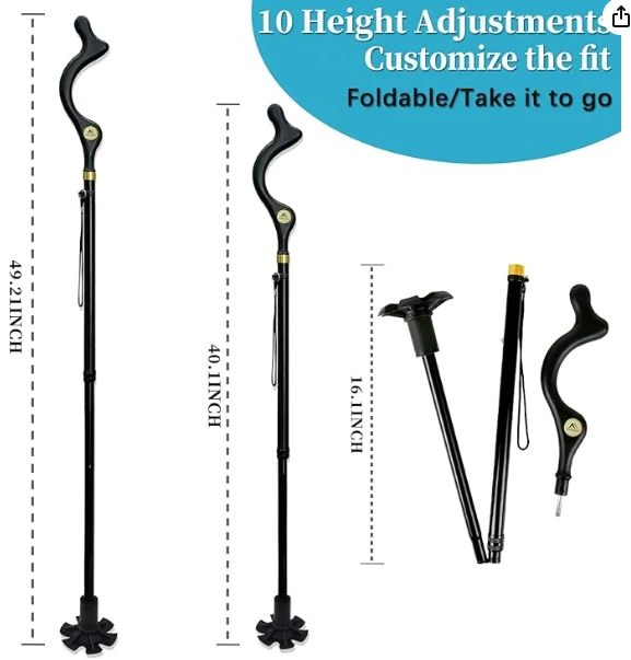 Vanjska oprema za penjanje planinarski stup, pješačka trska sklopiva za muškarce i žene seniori za ravnotežu, samostojeći sklopivi trske, podesiva visina lagana legura za hodanje protiv klizanja za pomoć u pomoći za pomoć mobilnosti