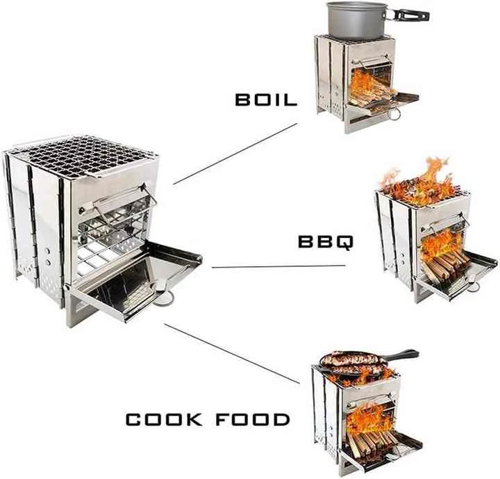 Mini kasetna peć od nehrđajućeg čelika, izrađena od nehrđajućeg čelika, moguće je proširiti raketnu štednju za ogrjev. Vrlo je zgodno za nošenje u pokretu.