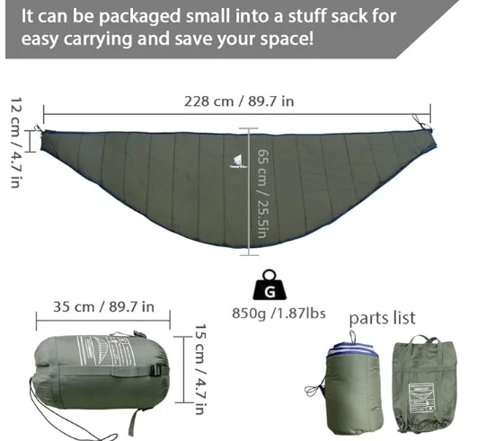 The 3 - 4 sezone Hammock Quilt idealan je za temperature od 41 ° F do 68 ° F; Savršeno je oblikovan da stane viseći viseći, koji vas štiti od vjetra i drži vas toplokonom.