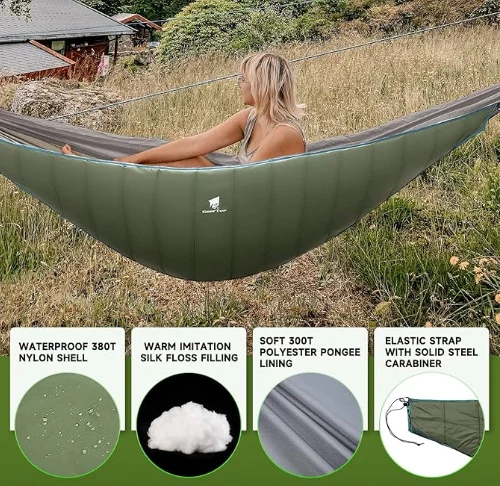 Turistički kampovanje, kombinirajte udobnost vrećice za spavanje i izolaciju viseća, olakšajte se postavljanja bilo kojeg standardne veličine Hammock-a, držeći vas u hladnom vremenu. Zhejiang Jiayu Vanjski proizvodi Co., Ltd. Jednostavno nošenje i uštedite prostor. Savršen je za kampovanje, ruksake, lov, aktivnosti na otvorenom, planinarstvom